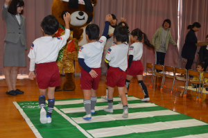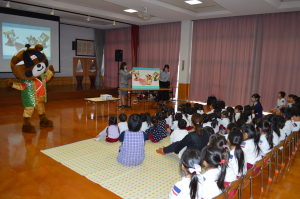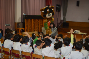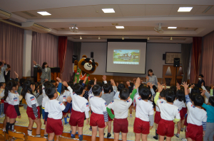 本日、寄島こども園にて「くまるの交通安全教室」を行ってきました。 園児たちに楽しんで交通安全を勉強してもらうために、紙芝居やクイズを行い、そこで学んで頂いたことの確認として横断歩道を実際に渡ってもらう練習も行いました。 楽しみながら覚えてもらうことで横断歩道のわたりかたも 全員しっかりと渡れていまた。 これからも岡山トヨペットは子供たちが交通事故に合わないために、楽しみながら交通安全について学べる「くまるの交通安全教室」を継続的に行っていきたいと思います。