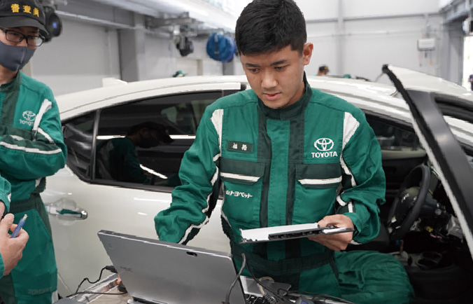 Education(育成、養成)を名称に採用し、若手からベテランまで、全てのサービススタッフの技能向上を目的にトヨペットの下支えができるスタッフを育成する施設です。整備場ではリフトを3台配置し、充実した設備で教育ができます。2F研修室では最新の通信環境を整え、遠隔地からでも講習ができるWebシステムを完備しています。